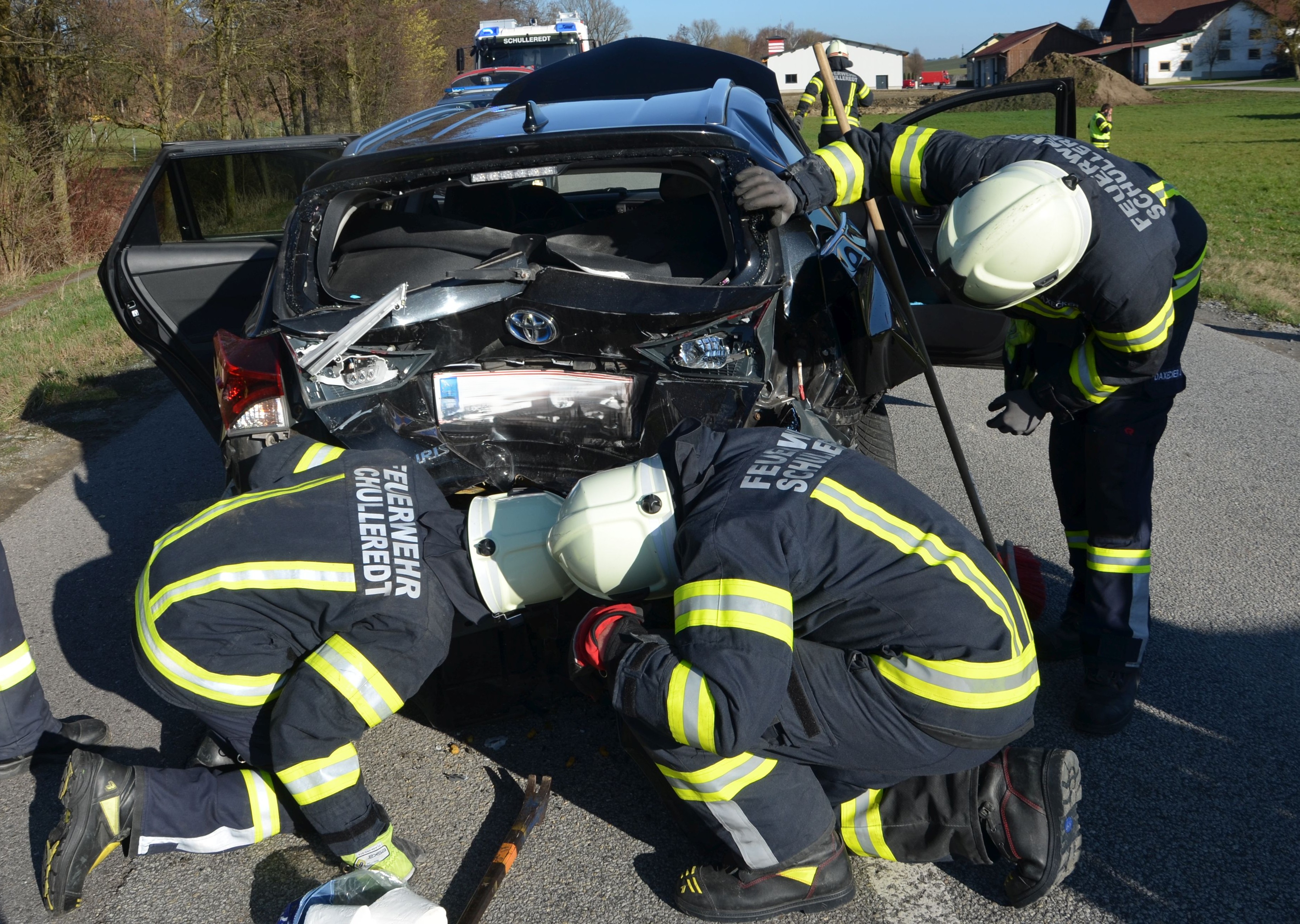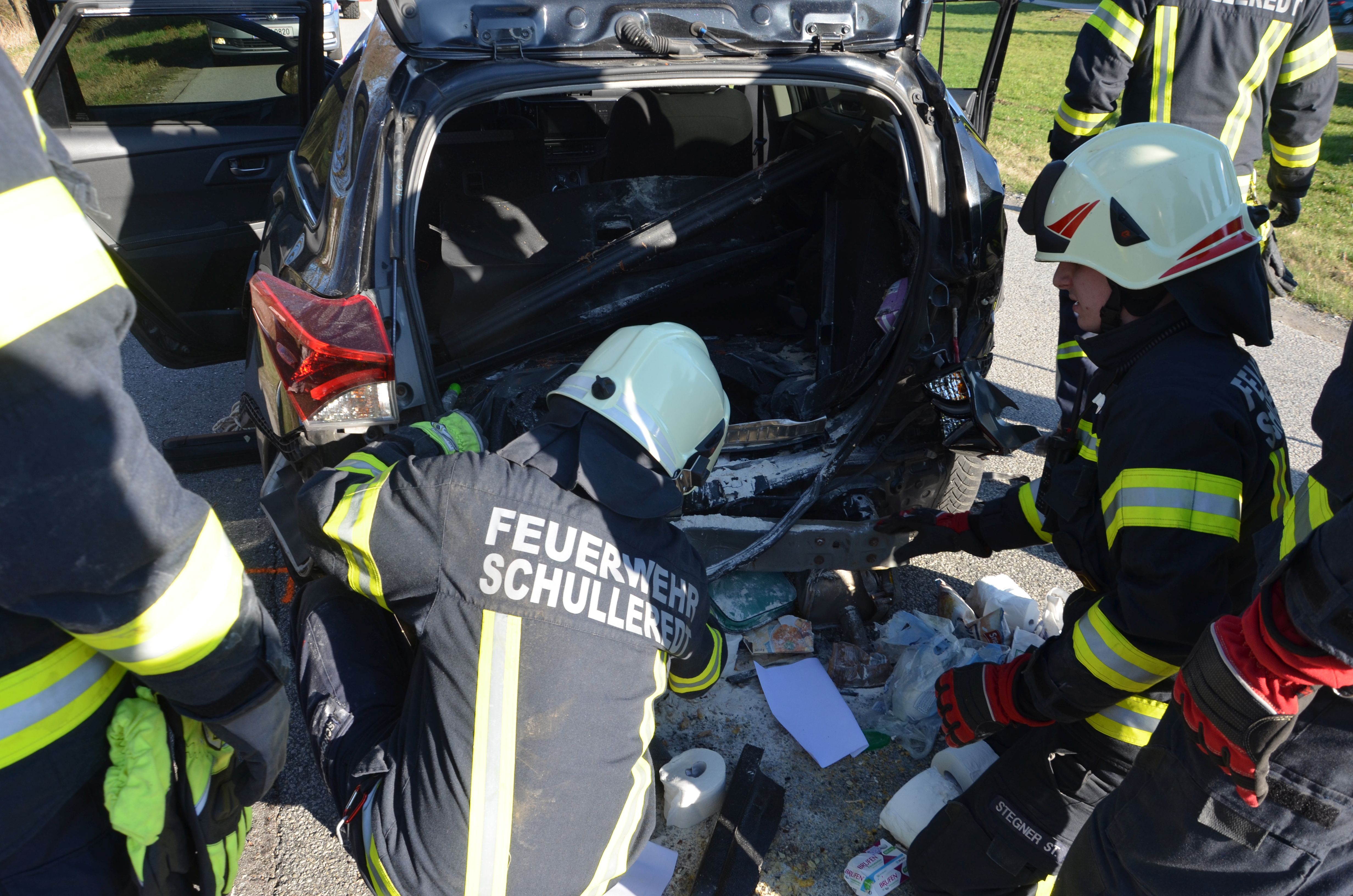 Am Freitag, dem 13. März 2026 um 15:29, erfolgte von der Landeswarnzentrale, die Alarmierung der FF Schulleredt zu Aufräumarbeiten nach einem Verkehrsunfall auf der L1129, Höhe Autzing. Ein 83-jähriger Lenker war gemeinsam mit seiner 81-jährigen Ehefrau auf der L1129 von Andorf in Richtung Raab unterwegs. Aus bisher ungeklärter Ursache fuhr der Mann ungebremst auf das Heck des vor ihm fahrenden Fahrzeugs einer 55-jährigen Frau aus dem Bezirk Grieskirchen auf. Bei dem Zusammenstoß zogen sich die 55-Jährige Frau als auch die 81-jährige Ehefrau unbestimmten Grades Verletzungen zu. Der Rettungsdienst führte die Erstversorgung durch und lieferte anschließend die Verletzten in die Krankenhäuser Schärding bzw. Ried ein. Während der von der FF Schulleredt durchgeführten Aufräumarbeiten kam es bei einem der beteiligten Fahrzeuge, einem Hybridauto, zu einer Rauchentwicklung im Bereich des Akkus. Daraufhin erfolgte die Nachalarmierung der FF Andorf zur Unterstützung beim Brandschutz. Im Anschluss stellte eine Spezialfirma das Hybridfahrzeug in einem Quarantänecontainer sicher. Die FF Wallern brachte eine Temperaturüberwachungseinheit an, um mögliche Temperaturanstiege frühzeitig zu erkennen. Die Überwachung bleibt bis zur fachgerechten Entsorgung des Elektrofahrzeugs aktiv. So kann im Falle einer erneuten Hitzeentwicklung oder Brandgefahr die zuständige Feuerwehr umgehend alarmiert werden.